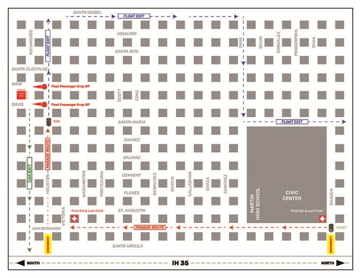 El desfile iniciará las 6:00 de la tarde del mismo jueves y recorrerá el centro de Laredo con presentaciones musicales, carros alegóricos y la participación de agrupaciones estudiantiles. El evento forma parte de las celebraciones tradicionales que cada año congregan a familias y visitantes en el primer cuadro de la ciudad.