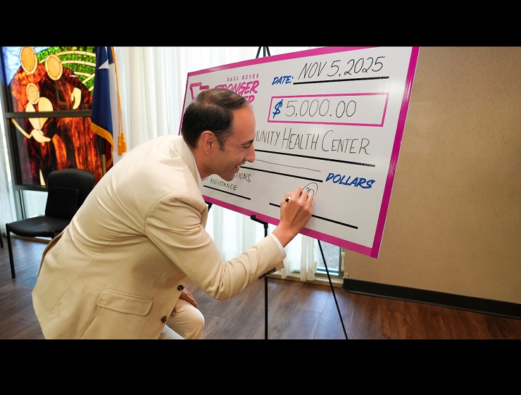 LAREDO, TX. —Gateway Community Health Center recibió un aporte de 5,000 dólares destinado a impulsar servicios de detección temprana de cáncer de mama, estudios diagnósticos y asistencia directa para pacientes de la comunidad. La entrega se realizó en la Clínica Central, con la participación del tesorero del Condado de Webb, Raul Reyes, y la Raul Reyes Stronger Together Breast Cancer Foundation.