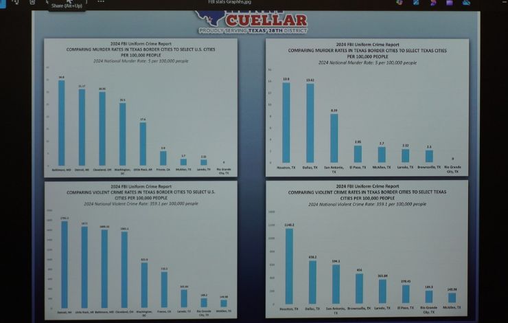 El congresista Cuéllar destacó que “año con año, las cifras muestran que nuestras comunidades fronterizas son más seguras que muchas de las grandes urbes del país. Aquí en Laredo, la seguridad se refleja no solo en los reportes oficiales, sino en la tranquilidad de las familias que llevan a sus hijos a la escuela, caminan hacia la iglesia o acuden al trabajo con paz mental”.
