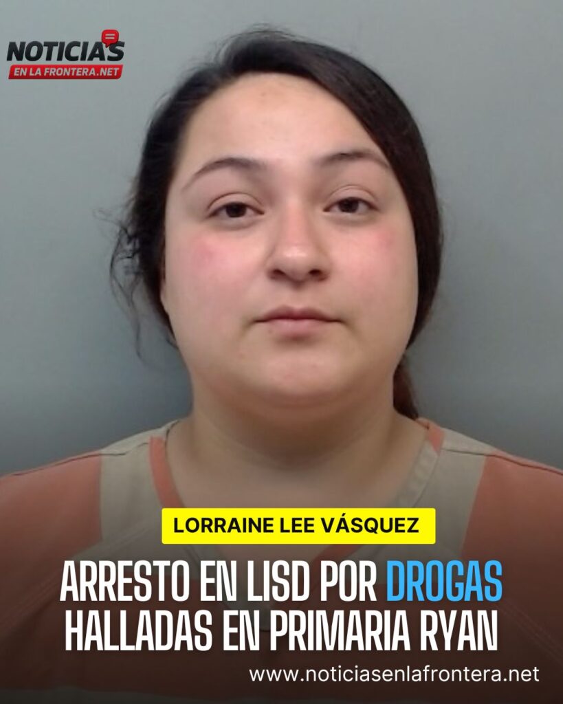 LAREDO, TX. — El viernes 5 de septiembre de 2025, agentes del Departamento de Policía del Distrito Escolar Independiente de Laredo (LISD) arrestaron a Lorraine Lee Vásquez tras presuntamente introducir drogas a la Escuela Primaria Ryan, mientras entregaba refrigerios en un salón de clases.